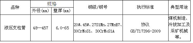 用于制作煤矿开采用的液压设备、汽车起重机用的液压缸、柱塞等,其中液压支柱用无缝管需求量 大。用户要求液压支柱管具有很好的使用安全性、可靠性。我乐玩体育官方网站生产的液压支柱管具有化学成分波动范围小、有害元素含量低、钢质纯度高、内外表面质量好、几何 尺寸精度高、性能稳定。满足用户提出的液压支柱管使用安全性、可靠性要求。