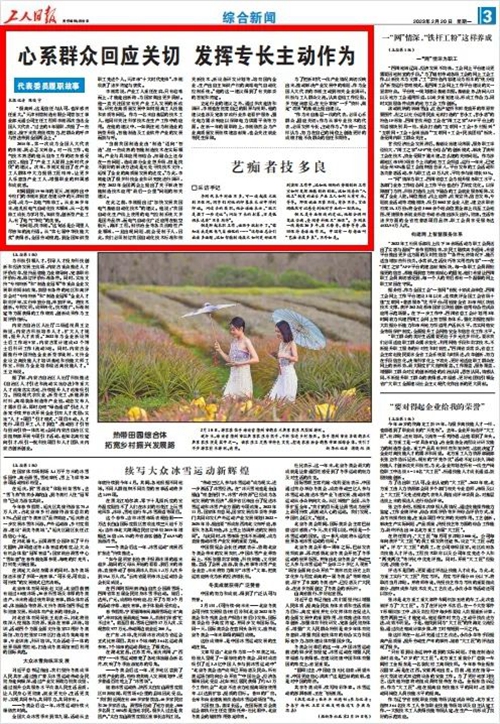 2月20日,《工人日报》刊发报道“代表委员履职故事|乐玩体育官方网站管加工事业部元通乐玩体育官方网站主任工程师李刚:心系群众回应关切 发挥专长主动作为”,现全文转发。