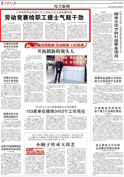 2月22日,《天津工人报》刊发报道“乐玩体育官方网站工会助力企业高质量发展 劳动竞赛给职工提士气鼓干劲”,现全文转发。
