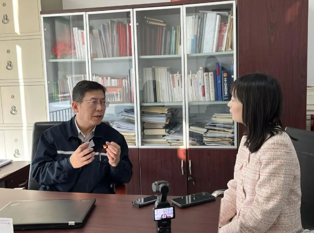 图为李刚接受《中国冶金报》记者采访